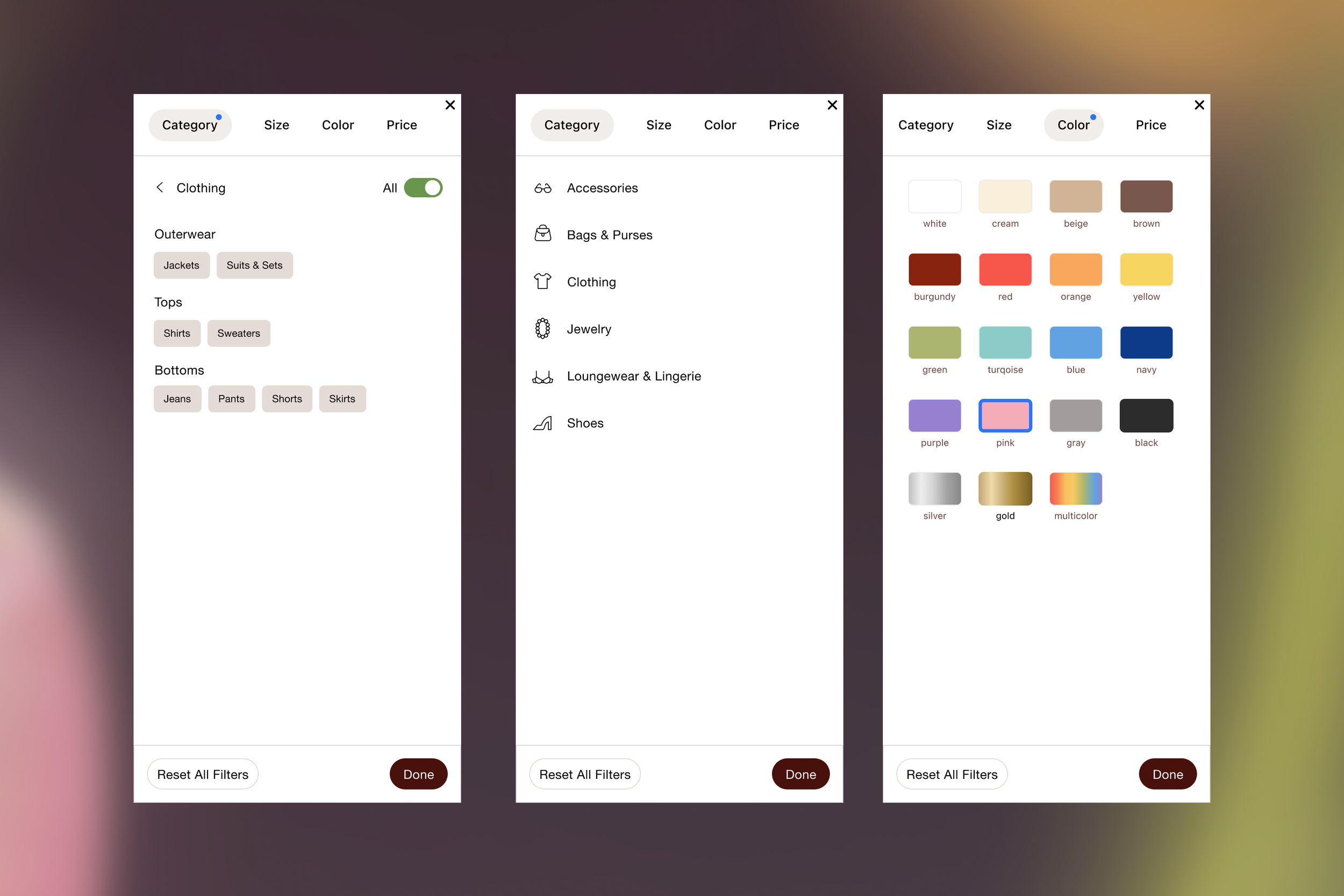 A clear, intuitive interface that enables fast decision making and a personalized shopping experience through a sophisticated cross-category search and tagging system.